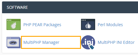 Start by opening the MultiPHP Manager interface by navigating to: cPanel >> Software and then clicking on MultiPHP Manager: