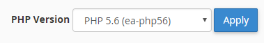 Seleccione la versión de PHP de la lista en el lado derecho de la pantalla sobre la lista de dominios, y luego haga clic en Apply: