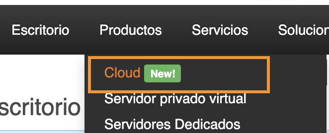 - Después de ingresar a tu panel de cliente CORE, debe navegar en el menu de Productos ahi se encontrará el submenu de Cloud.
