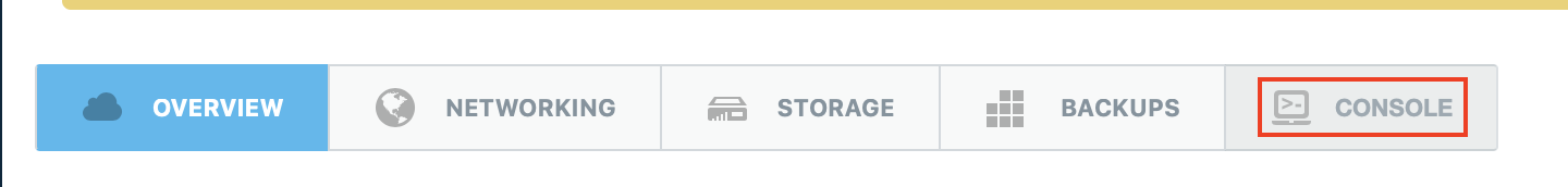 - En el menu de la parte superior de la pantalla de detalles del servidor virtual. Se encuentra un botón Console en la parte superior de lado derecho a lado del grupo de acciones sobre el servidor virtual, solo debe dar clic sobre el botón mostrado a continuación:
