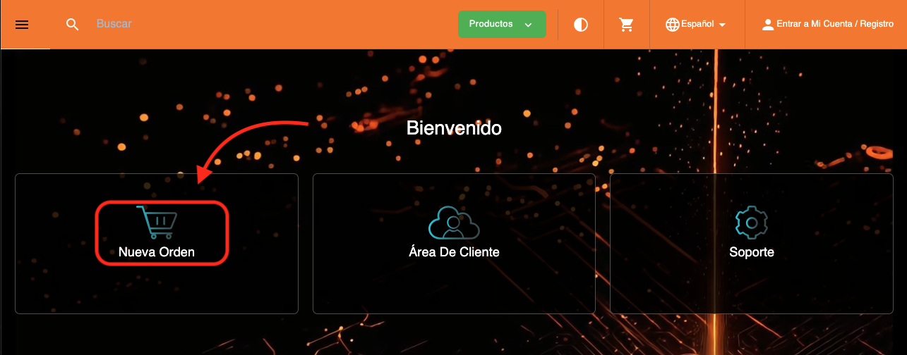 - Ingrese al portal de nuestros servicios en la nube y podrá ver la siguiente interfaz, en la cual se selecciona la opción “Nueva Orden“: