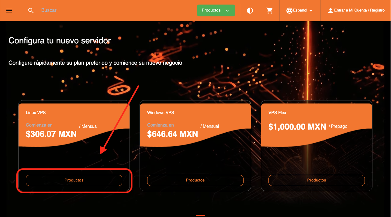 Una vez en esta interfaz, seleccionamos el Sistema Operativo que sea de su preferencia. Para este caso se utilizará “Linux VPS”: