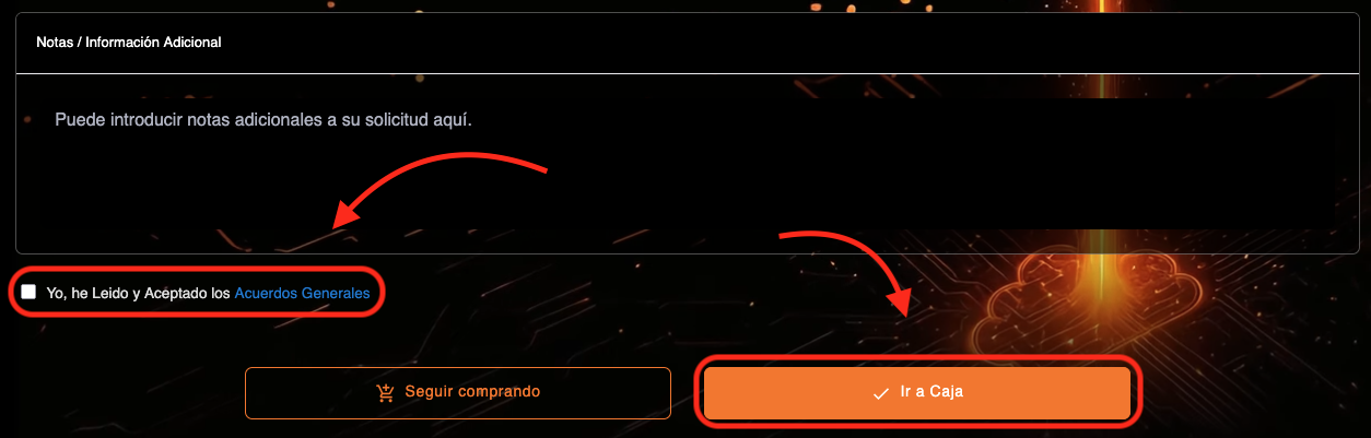 Se marca la casilla de “Acuerdos Generales” una vez leídos y se presiona el botón de “Ir a Caja”: